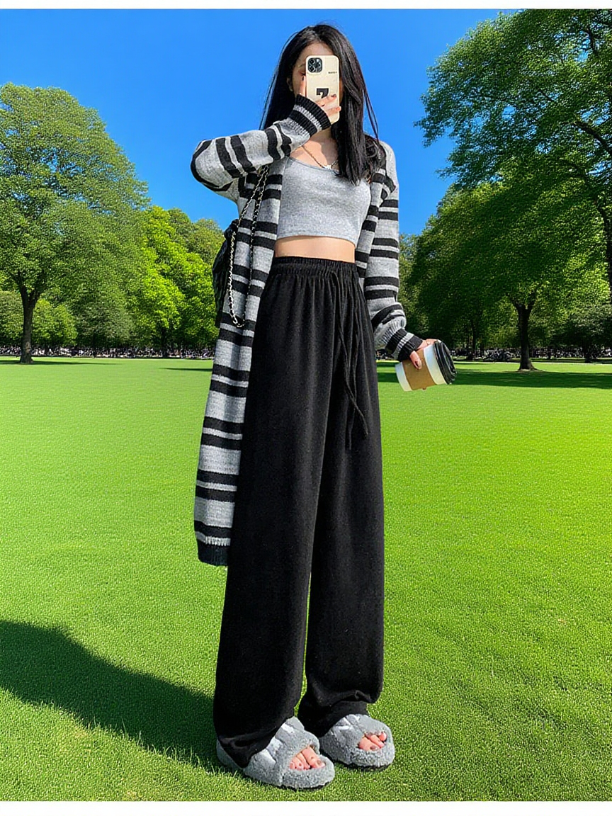 여성용 부드러운 드레이프 타월 스트레이트 팬츠【다재다능 바지】